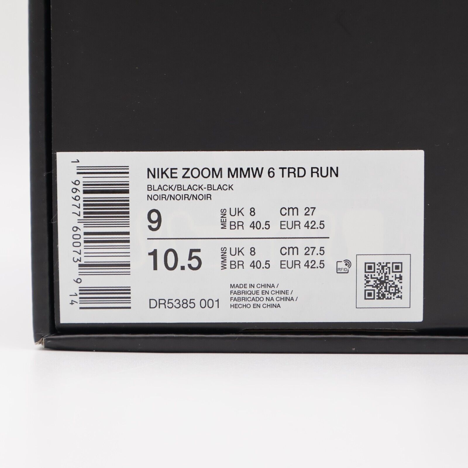 Last stock! DR5385-001 Matthew M Williams Nike Zoom MMW 6 TRD Run Black (Men's) Product form $318.99 US Shoe Size 4 5 6 6.5 7 7.5 8 8.5 9 9.5 10 10.5 11 11.5 12 12.5 13 14 Quantity Add to cart This item is a recurring or deferred purchase. By continuing, I agree to the cancellation policy and authorize you to charge my payment method at the prices, frequency and dates listed on this page until my order is fulfilled or I cancel, if permitted.