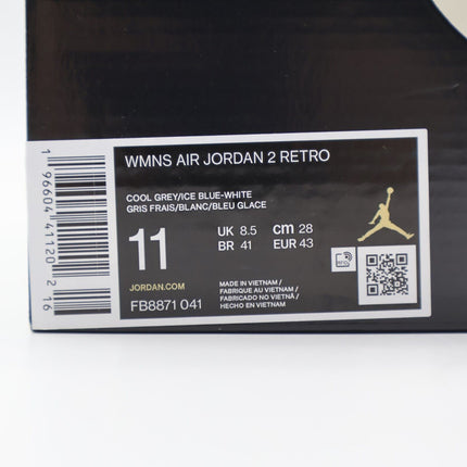 Last stock! FB8871-041 Nike Air Jordan 2 Retro Cool Grey Ice Blue White (Women�fs) Product form $203.99 US Shoe Size 5W 5.5W 6W 6.5W 7W 7.5W 8W 8.5W 9W 9.5W 10W 10.5W 11W 11.5W 12W 12.5W 13W 13.5W Quantity Add to cart This item is a recurring or deferred purchase. By continuing, I agree to the cancellation policy and authorize you to charge my payment method at the prices, frequency and dates listed on this page until my order is fulfilled or I cancel, if permitted.