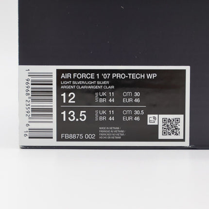Last stock! FB8875-002 Nike Air Force 1 '07 Pro-Tech WP Light Silver (Men's) Product form $252.99 US Shoe Size 4 5 6 6.5 7 7.5 8 8.5 9 9.5 10 10.5 11 11.5 12 12.5 13 14 Quantity Add to cart This item is a recurring or deferred purchase. By continuing, I agree to the cancellation policy and authorize you to charge my payment method at the prices, frequency and dates listed on this page until my order is fulfilled or I cancel, if permitted.