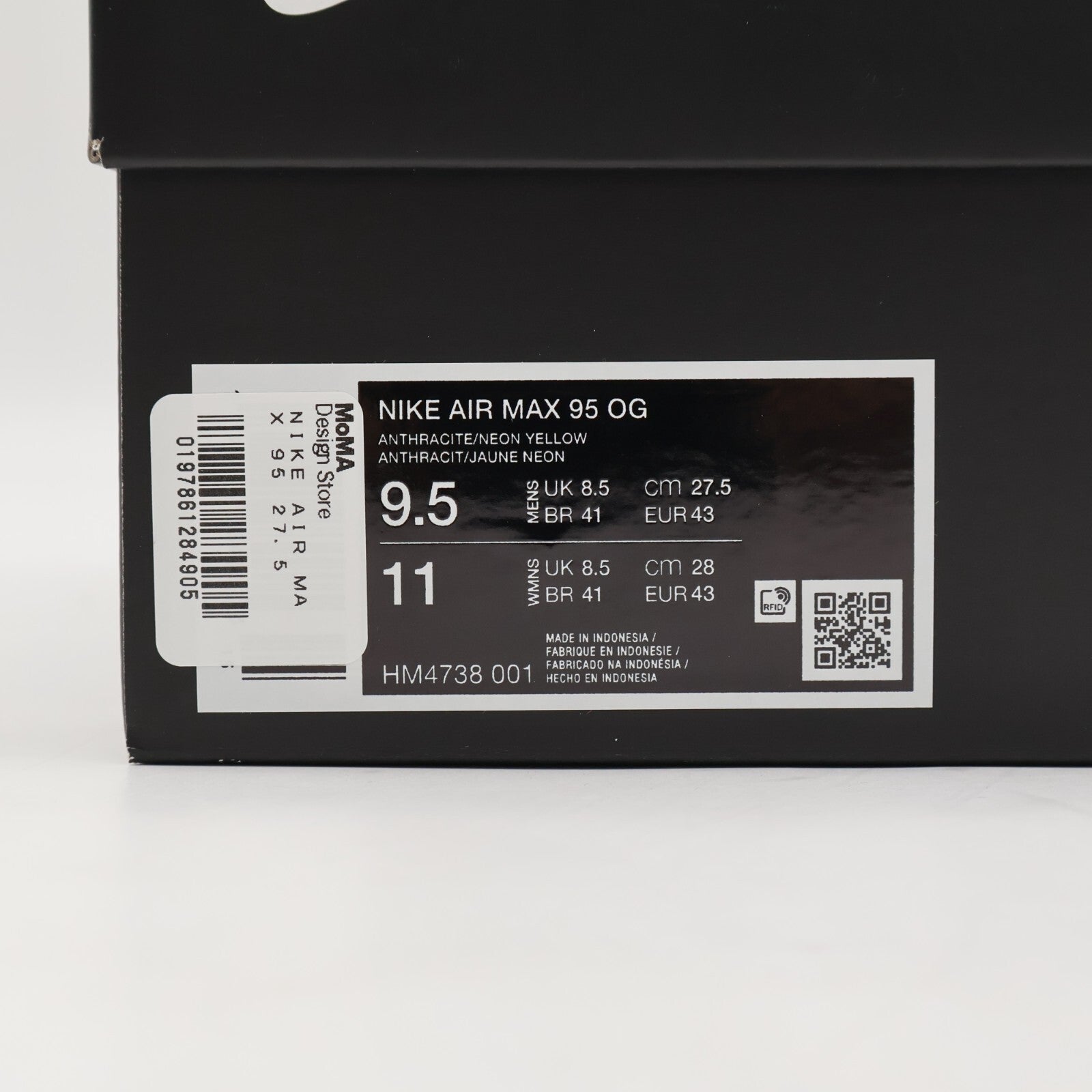 Last stock! HM4738-001 MoMA Design Store Exclusive Nike Air Max 95 OG Reverse Neon (Men's) Product form $697.39 US Shoe Size 4 5 6 6.5 7 7.5 8 8.5 9 9.5 10 10.5 11 11.5 12 12.5 13 14 Quantity Add to cart This item is a recurring or deferred purchase. By continuing, I agree to the cancellation policy and authorize you to charge my payment method at the prices, frequency and dates listed on this page until my order is fulfilled or I cancel, if permitted.